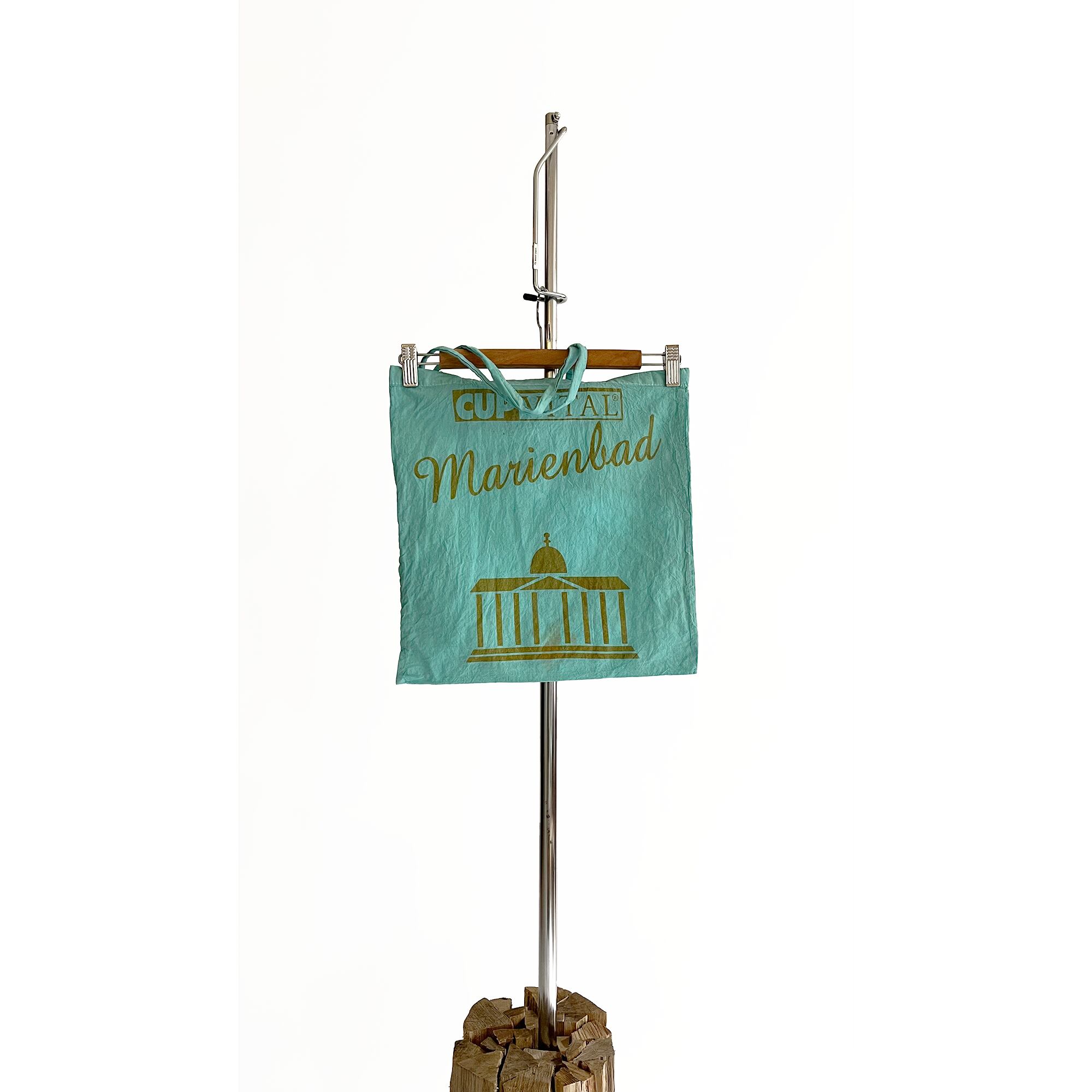 欧州から輸入したユーズドエコバッグをグリーンに製品染めしたものです。