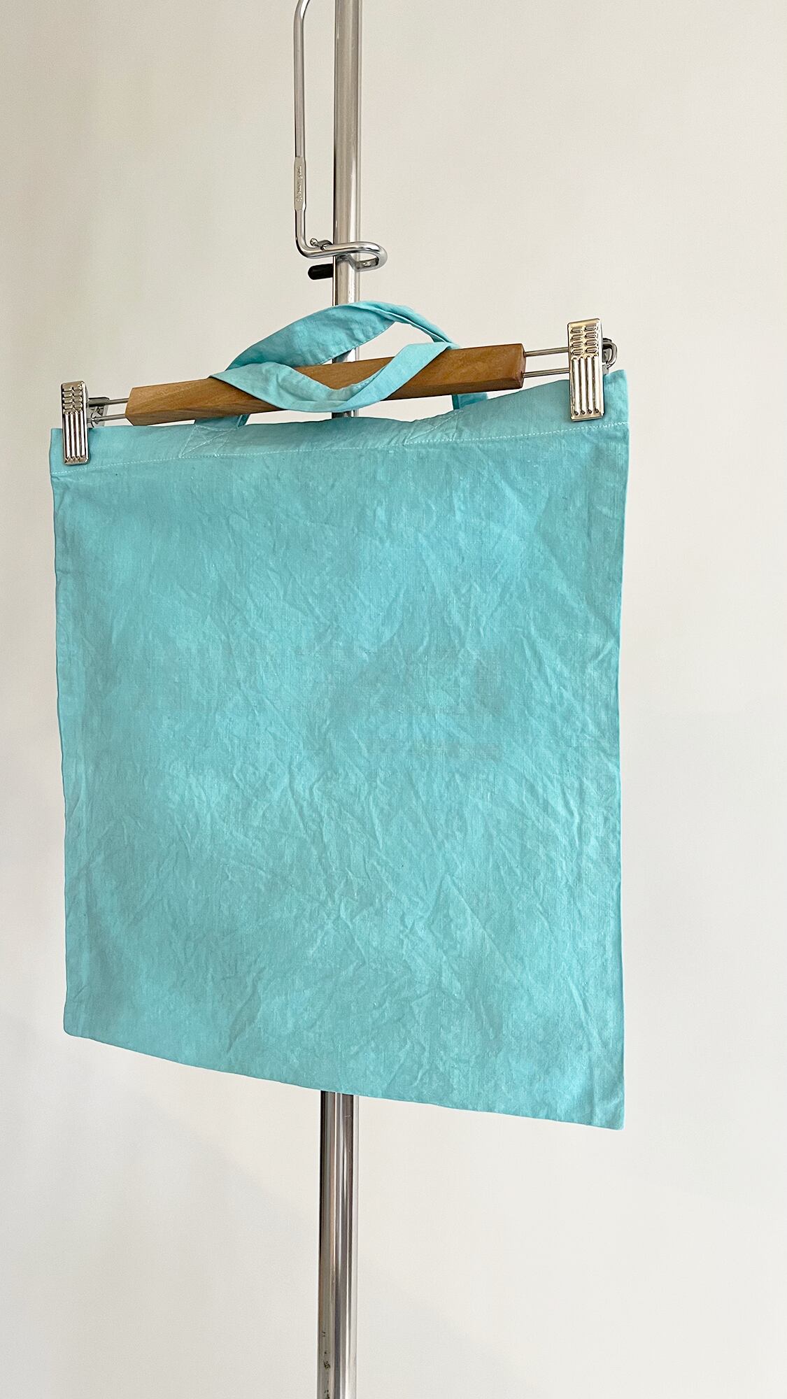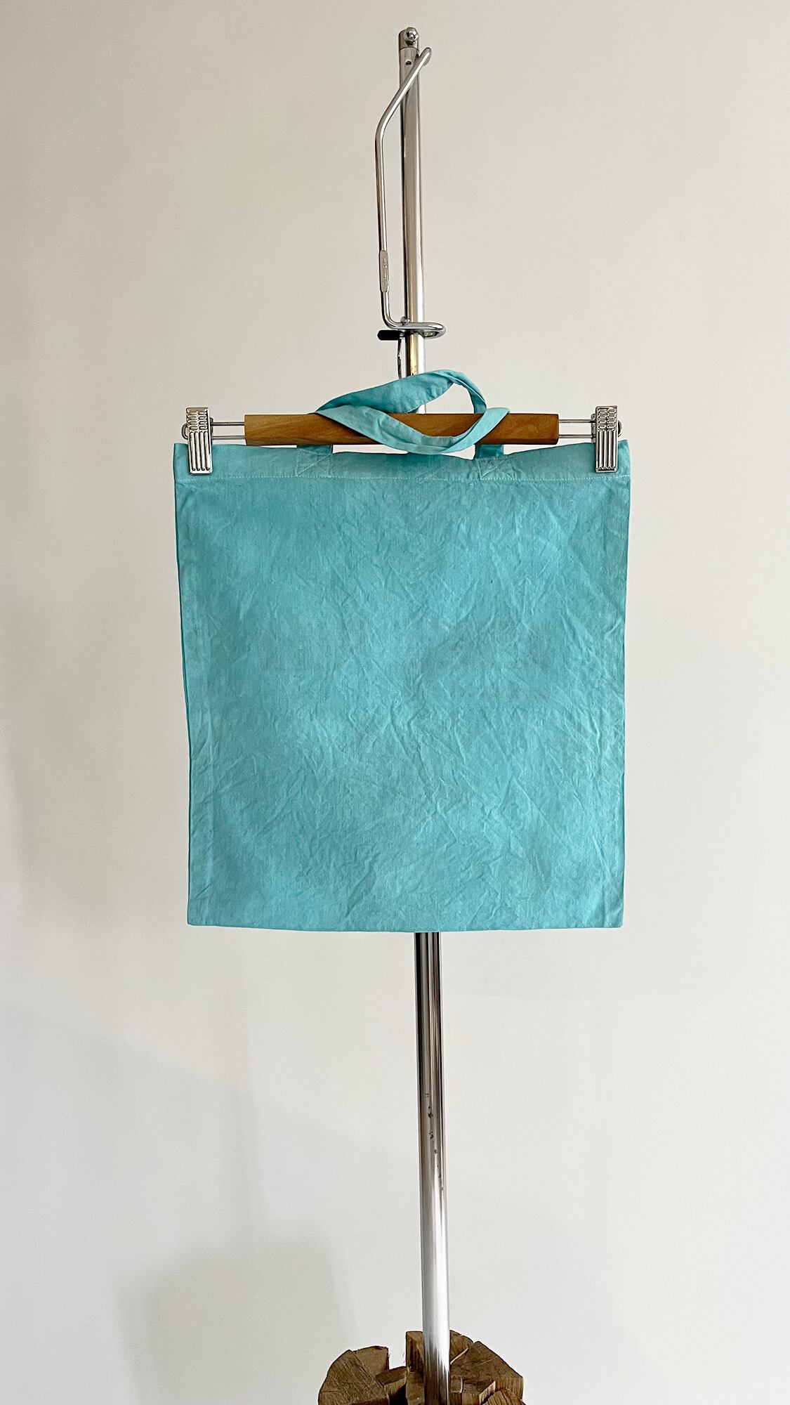 シミや汚れなどにより、そのままでは使いづらいエコバッグを綺麗な色に染めています。染めムラや元の汚れが見られる箇所もありますが、唯一無二の個性としてお楽しみ頂けたらと思います。