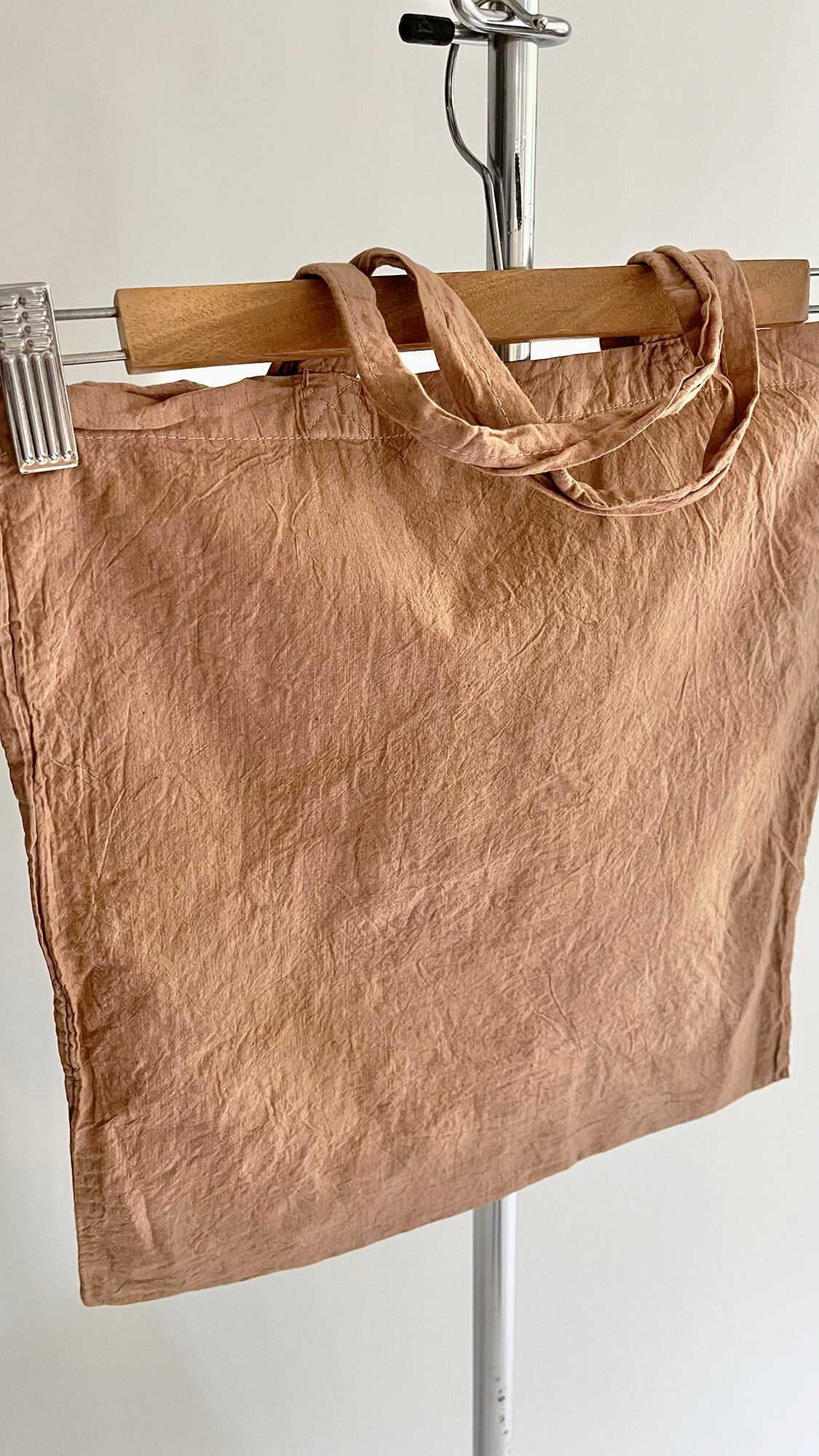 欧州から輸入したユーズドエコバッグをライトブラウンに製品染めしたものです。