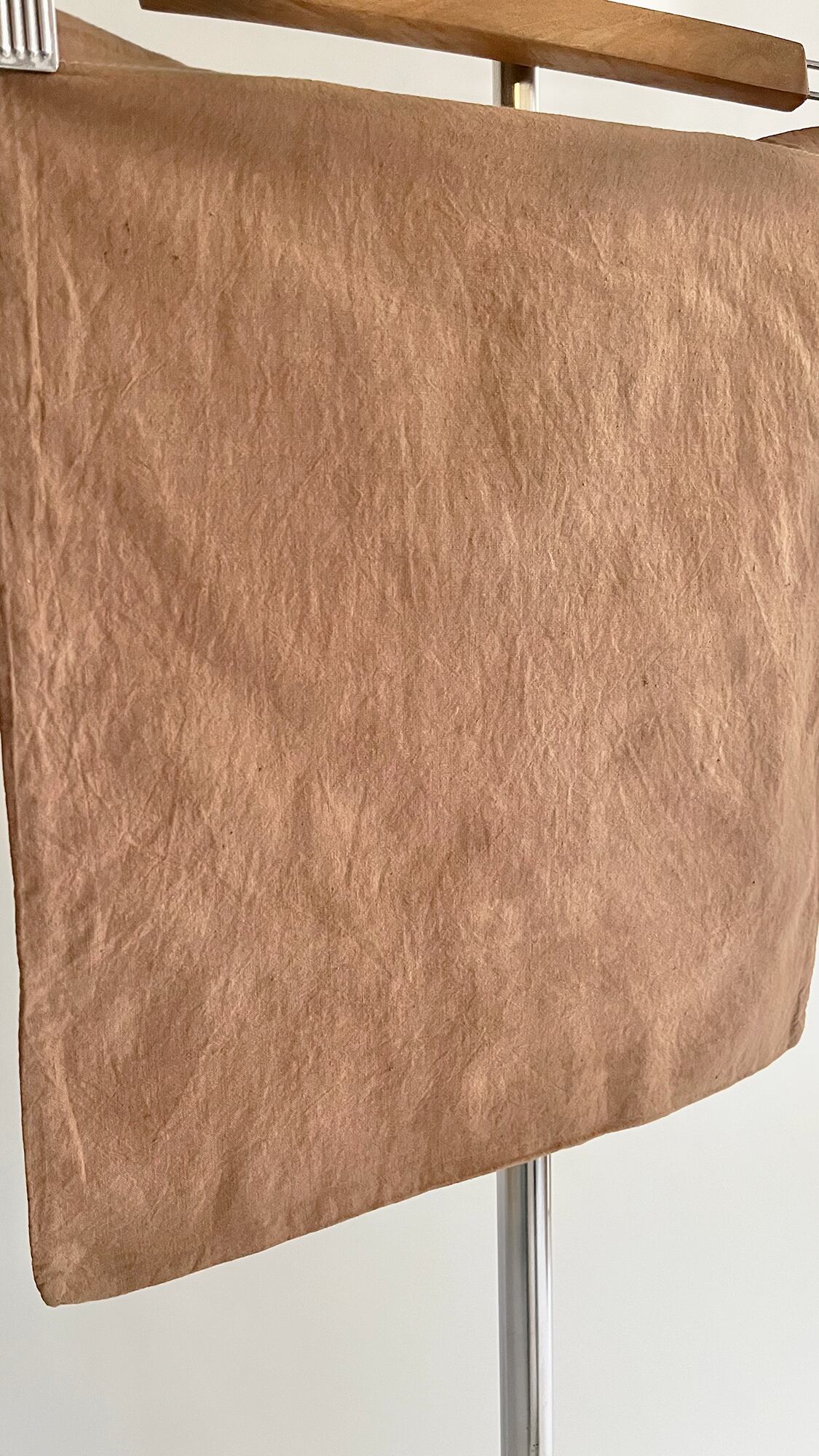 欧州から輸入したユーズドエコバッグをライトブラウンに製品染めしたものです。