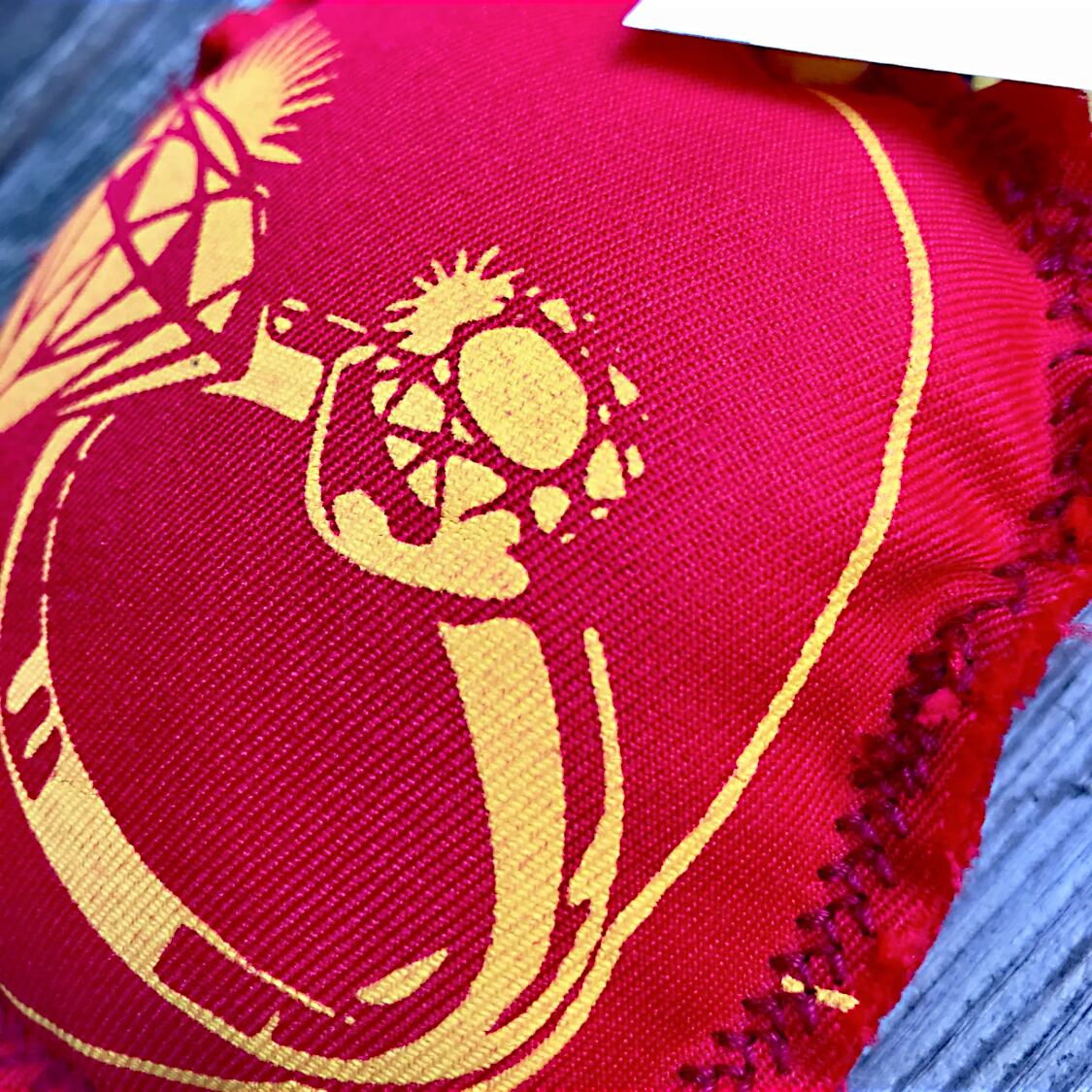 シミが目立っていたり、穴あきがあったり、エコバッグとしては役目を終えたモノの中から、グッとくる柄を厳選して、なるべく汚れや傷がない箇所でトリミングしてワタやスポンジを詰めました。